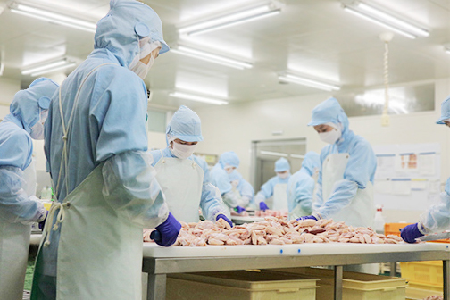 原料の選定から加工、味付け、凍結まで一貫して管理しています。
